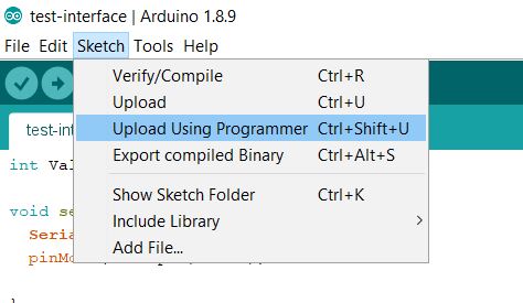 Note: when I clicked on the upload icon, there was error accour while uploading. The code was uploaded when I clicked on the “Upload using programmer” option.