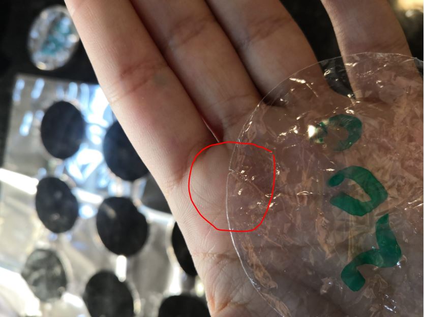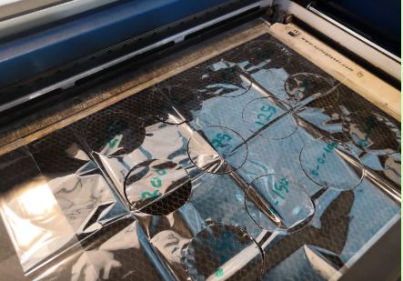 Since this is a new material to test, the power, frequency and the speed of the laser cutting machine was unknown. Therefore, I have traied different settings to test which one is the best for cutting and sealing the material for creating the inflatable baloons. Here is the steps that I did: