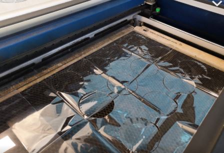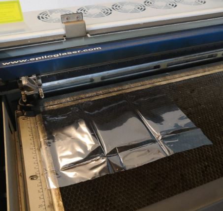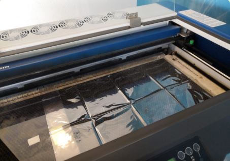 1- Cut a piece of the oven bag and place it in the laser cutting machine.