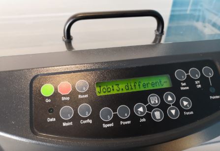 4- The design will appear in the Epilog task manager and the name of the design will show in the screen of laser cutting machine. Press Ok and the machine will start cutting the design and due to the heat of the laser it will seal the plastic paper.