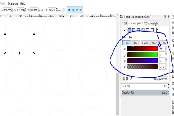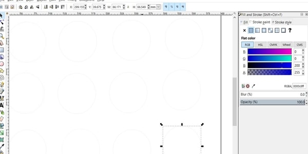 2- Then, to test different setttings (different power, frequency and speed), I decided to draw multiple circles. Each circle I will give it different RGB code. Then, in the laser cutting software I will map different settings to each color code to see which one is fit the best the desired purpose and requirments of this assignment.