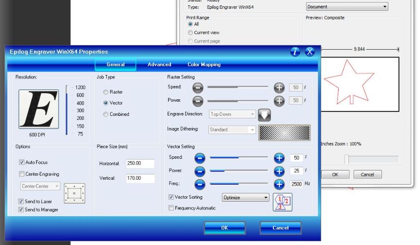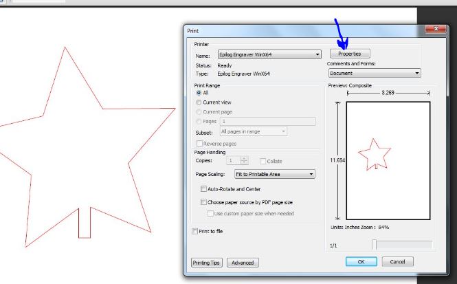 7- I saved the file as PDF, and then go to print > proparties and map different settings to each color