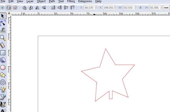 Using Inkscape software, I have drawn a simple shape which is a STAR! The star will be cut later using the laser cuttering machine to create the inflatable baloon. To that star, I have added a small rectangle so I can blow through it later on to make a volume (baloon). Here is the process of the design: