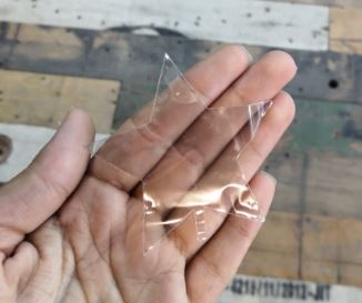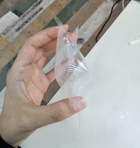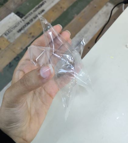 The figure below shows the material I haved used to create the inflatable baloons which is acutally an oven bag! Note that many kinds of plastic should not cut or even engraved with the laser cutting machine as some of them contain chlorine which can release harmful fumes, while others may damage the machine. Therefore, I was looking for a suitable material that will not effect the machine and can be used safely. This can be achived by chosing a materail that do not contain chlorine. The best thing I found was oven safe PET plastic wrapping, so I started do testing with it.