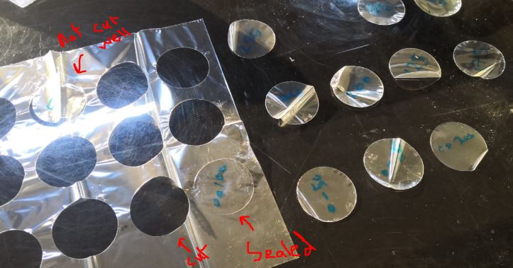 We can see that when the speed was 95 and the power was 5, the laser cutting machine did not cut the over bag and it just seal it.