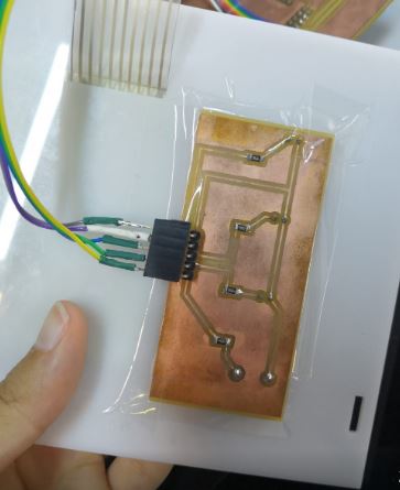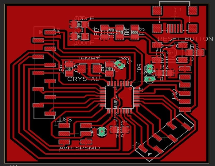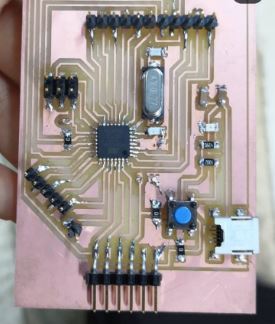 After designing the circuit, I have printed the PCB on a single layer board through Roland Mill SRM-20 machine and by using fab modules then, I soldered the components on it.