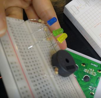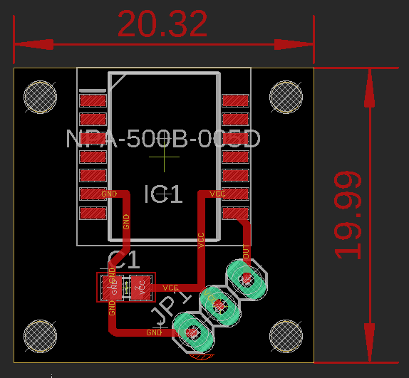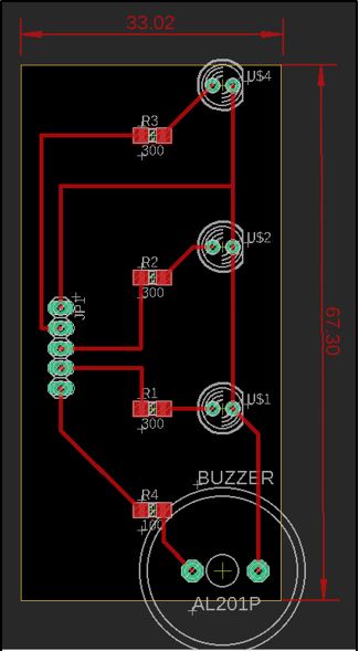 After the schematic, I moved to the PCB design. The figure below shows how I had designed the PCB of the LEDs and buzzer as well as the size of the board: