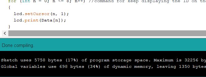 This video below shows when the code was testing. It shows that the buzzer goes high when the user entered invalid ID. Also, a message will be shown on the screen to tell the user that the ID in not eccepted. The user can clear charecters and re-enter values using the backward arrow.