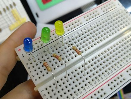 The picture below shows the ciruit after I haved soldered the components and fixed the board on the box. I have also made a stickers to present what each LED represent.