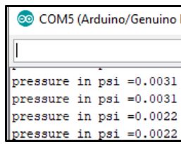 pressure_psi = (0.18*(SensorVoltage)-0.45); //converting voltage value into pressre in PSI.