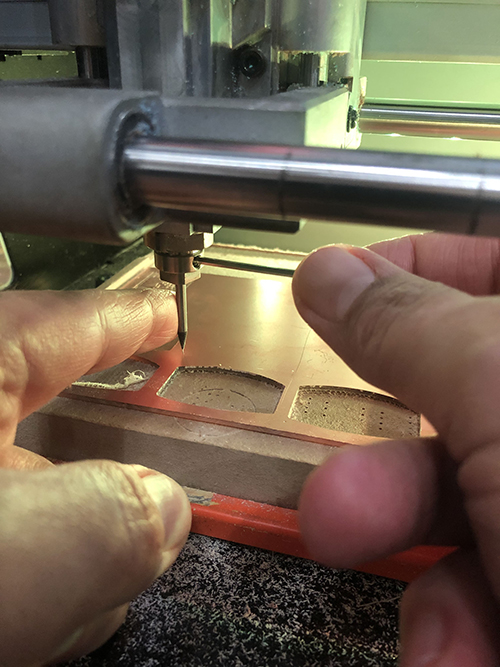 First we set the copper board on the working area of the milling machine.