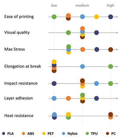 - Nylon possesses great mechanical properties, and in particular, the best impact resistance for a non-flexible filament. Layer adhesion can be an issue, however.