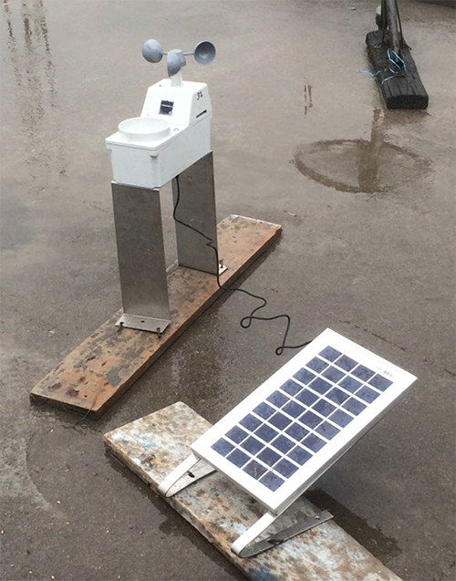 The system may include a wind + rainwater data base on top of a pole, fixed to the ground by steel cable tensors. The data obtained by the system should be sent by Lora network to local devices to read and store the info.