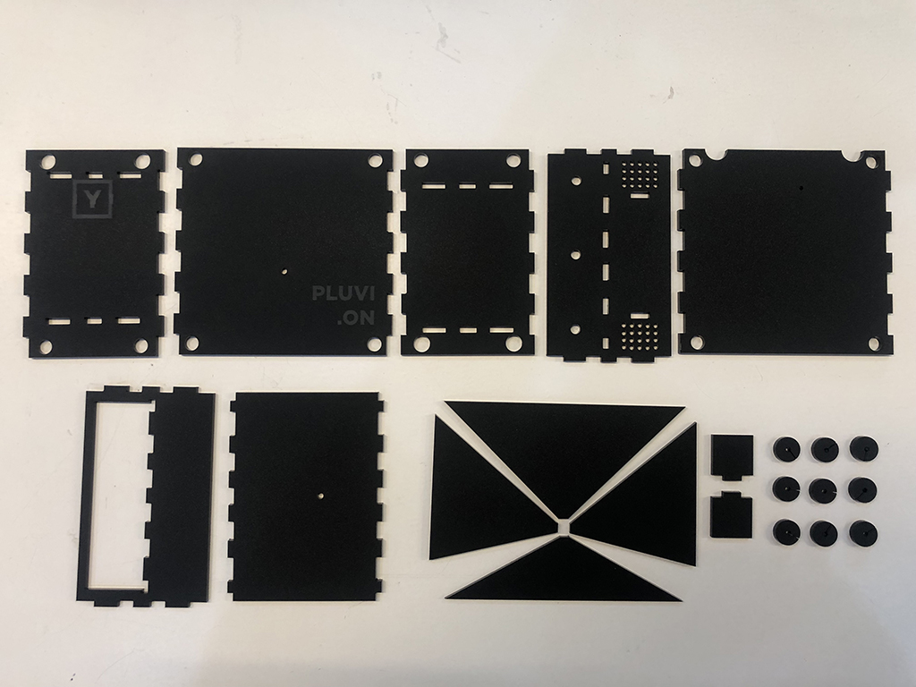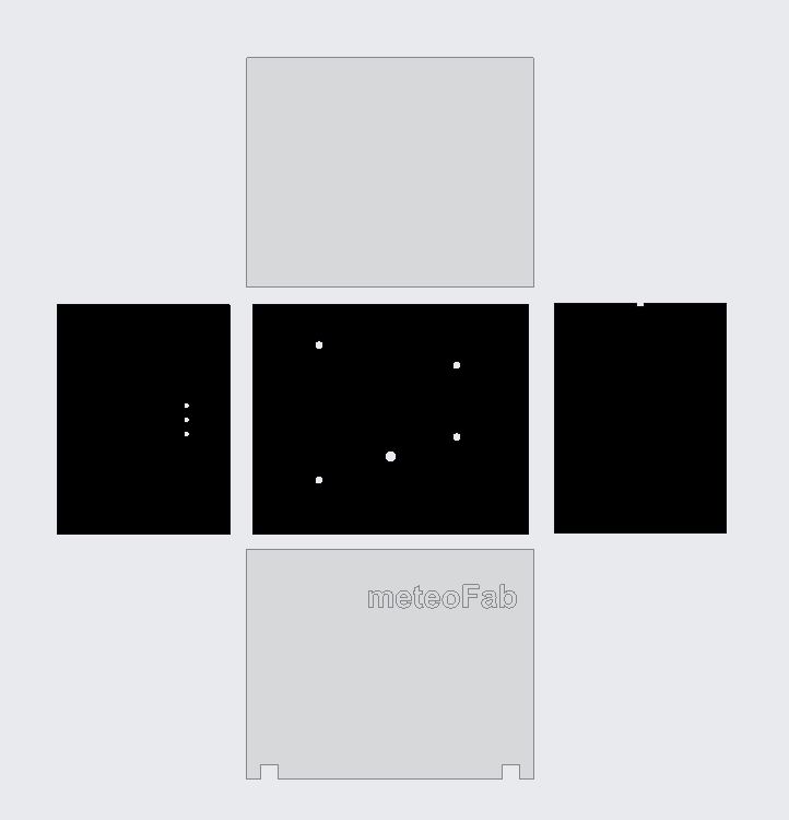 The main case encloses all the electronic sensors in the interior and it is divided in two spaces: one for protecting the electronics core, and one for isolating the rain gauge chamber. The walls are made of acrylic plastic of 3mm embedded into the top and bottom bases' perimetral grooves.