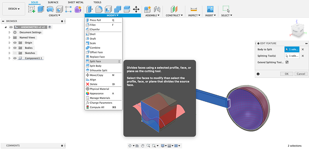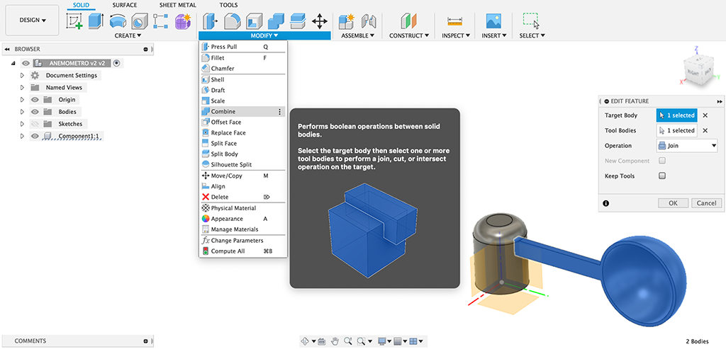 While designing models or assemblies it is important first to understand the nature of parts differing between bodies and components. This aspect will define the model as a whole (body) or divisible in parts (components), so the material properties, or geometrical definitions can affect to the whole model or just the selected components.