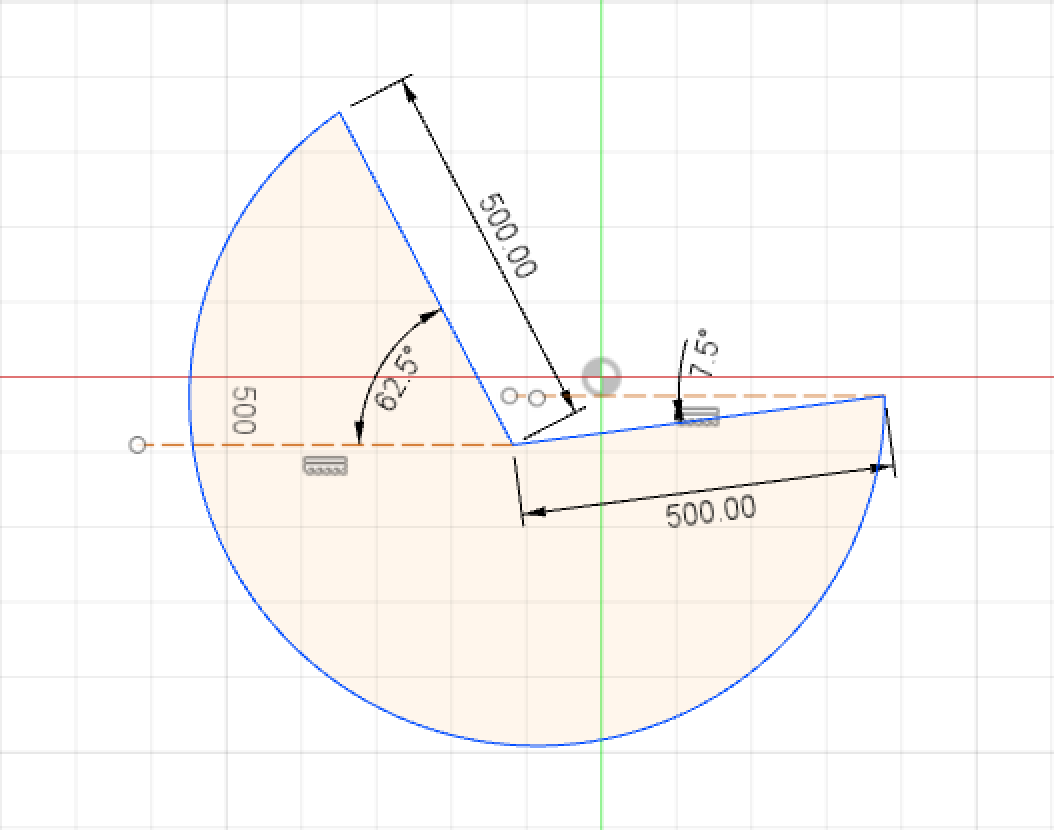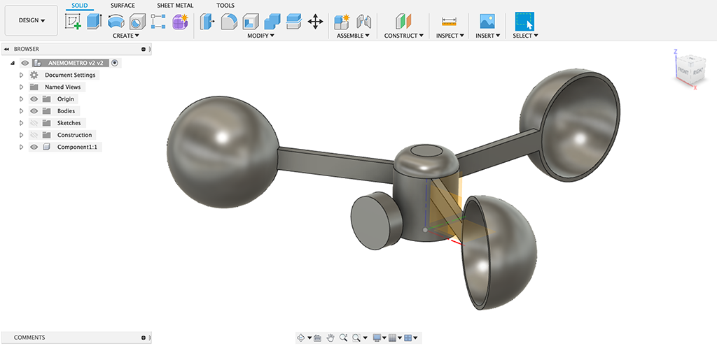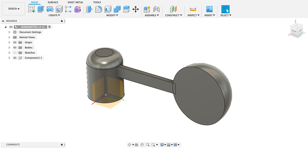 The last thing I should do is connecting the magnet's room with the anemometer's center by creating a semicylinder piece that I will extrude from a semicircle as shown below: