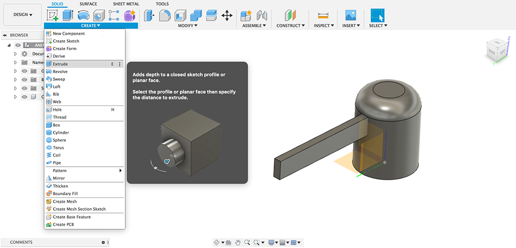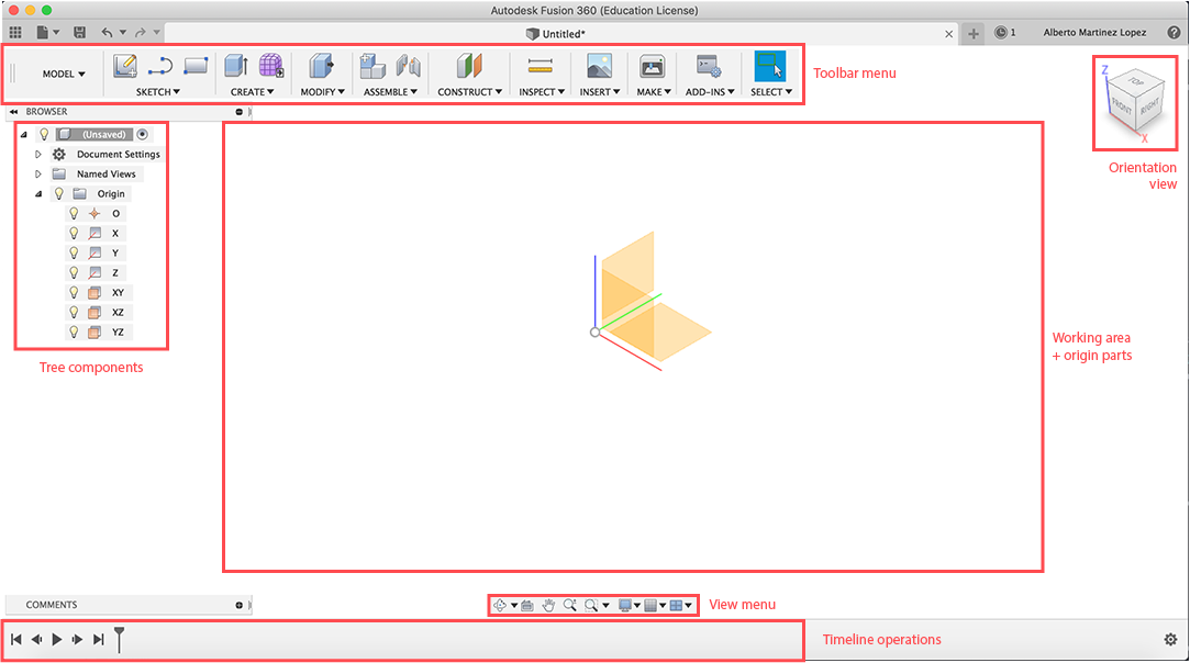 Apparently, Fusion360's interface looks similar to other CAD softwares like Solidworks or CreoParametric, but later you can notice there are many many differences in showing things like the timeline actions, the components-tree, the toolbar menu, or even the options for saving in online or offline modes.