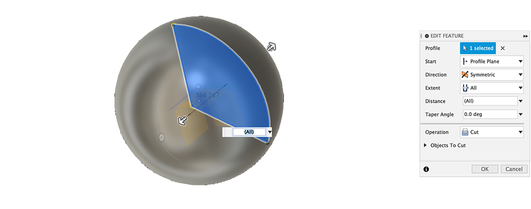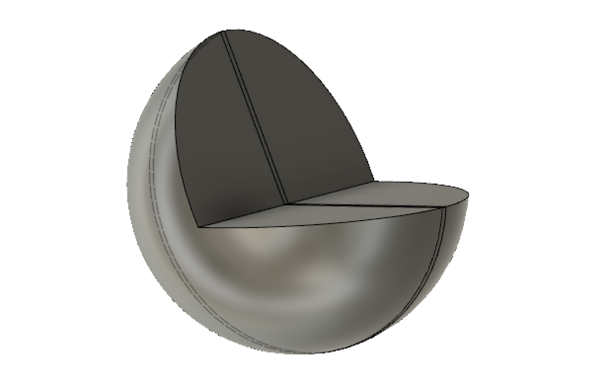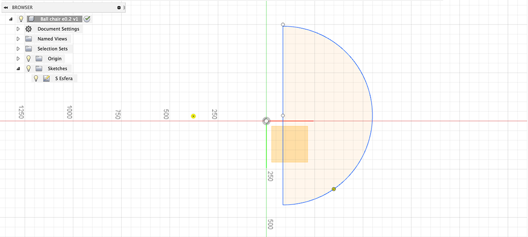 But the easy process of designing the chair will start creating a ball, which means revolving a semi-circle along its axis. So this is the first skecth I made: