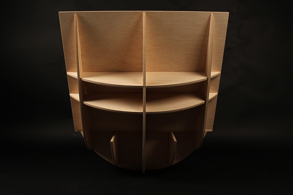 For this assignment I chose to redesign an old project I worked on 4 years ago. The project was about designing a chair made of plywood pieces, with no glued or screwed joints. The original idea considered to design a chair out of a sphere by volume substraction turning the chair into a 360 rotation rocking chair. The first model was designed with Creo Parametric software and rendered with Keyshot. Here there are a couple of renders of the original idea:
