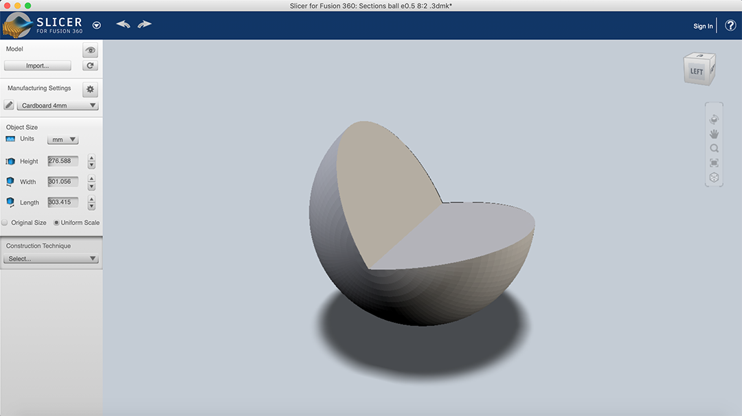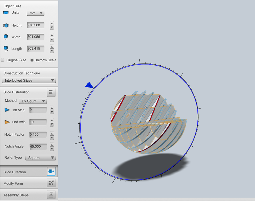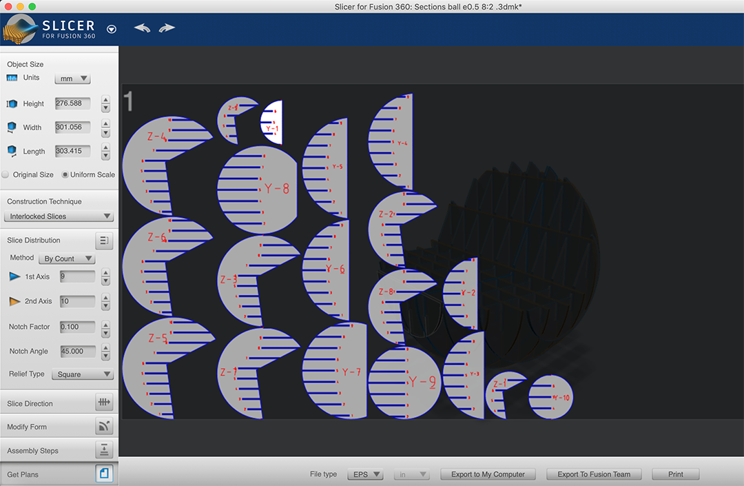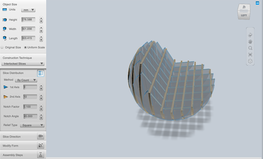 This way the model can be transformed into a sliced structure. The properties of the slices as well as its distribution along the cutting panels are calculated by the plugin software.
