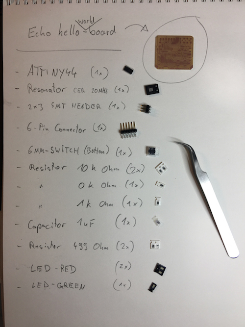 The board was ready to be soldered, for that I prepared the Bill of Material (aka BOM):