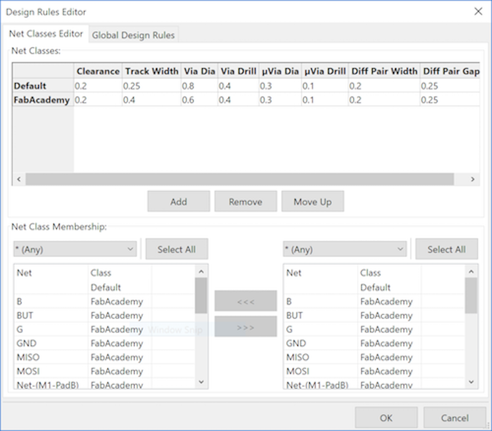 Before starting with the PCB design, I had to install the FabLibrary. For that I opened the Design Rules Editor and made up the settings as shown here: