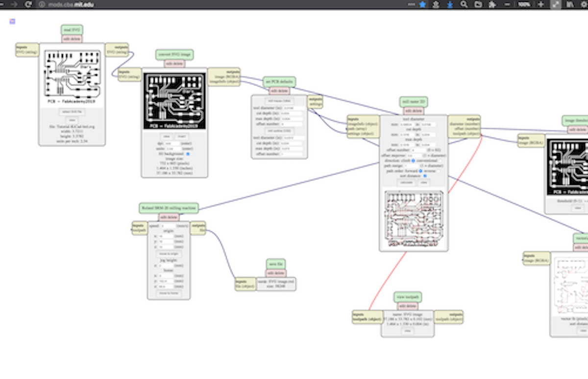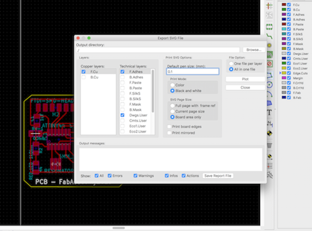 Then I had to export two SVG files, one for the traces and one for the outline cut. These files were sent to the MODS interface...