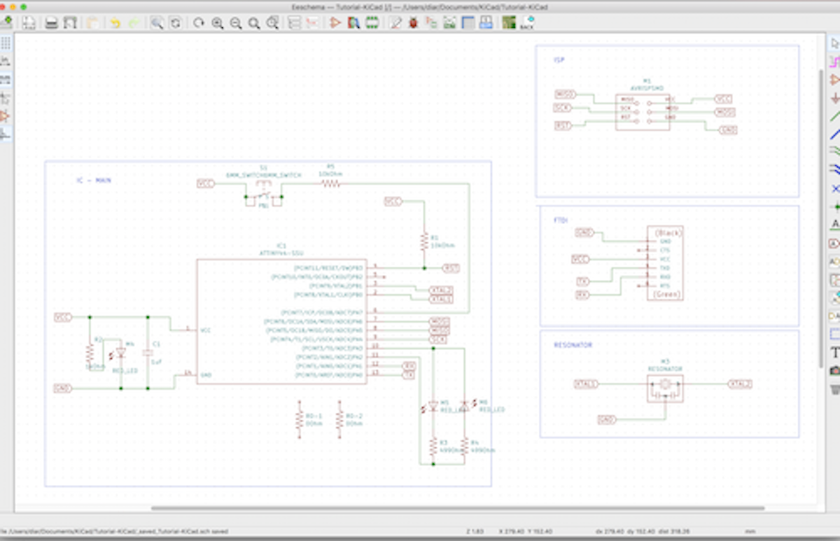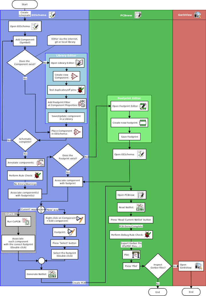 This week we designed the board with the KiCad programm, which is an open source software suite for Electronic Design Automation (EDA). The KiCad homepage shows a flowchart, which schematize the workflow of this software: