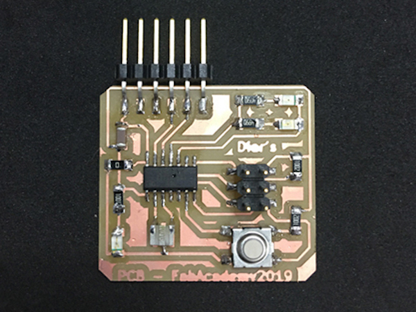 Two weeks ago we learned, that the ATtiny44 has no bootloader section in it's flash memory (see also ATTiny Datasheet, p.159). This means, that programing the microchip requires an external device, as e.g. an USBtinyISP, or the FabISP Programmer from our assignment week 4. The FabISP can be programmed via the Serial Protocol, but it is also possible to connect it to USB.