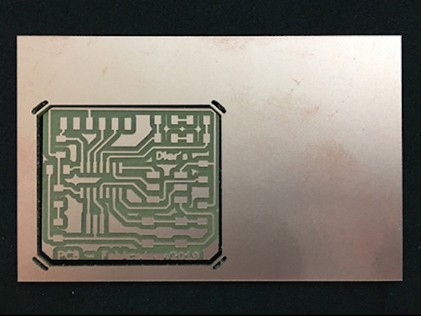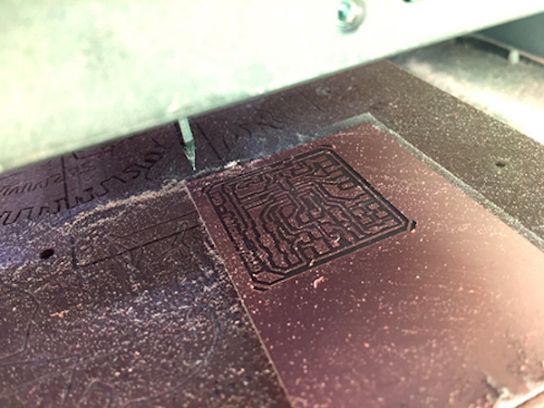 Using the Roland SRM-20 machine I milled first the traces and then the outlinecut.