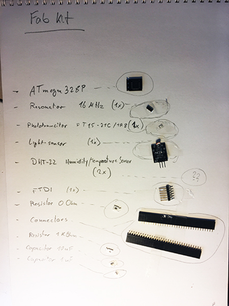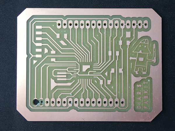 It might be a possible, but only when the programming code is in C and the libraries are reduced to a minimum size. But regarding the fact, that I also wanted to add other sensors, I finally chose the ATmega328P and searched for existing versions of a Fabduino, aka Fabkit Board. Here are three examples I found in Fabacademy archive: