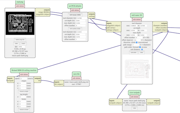 I drawed the traces in white on black background, but the second mill job, with the holes, had to be inverse, so black with on white background.