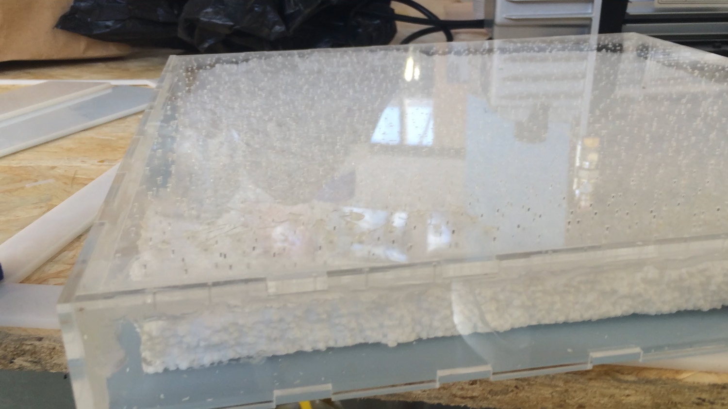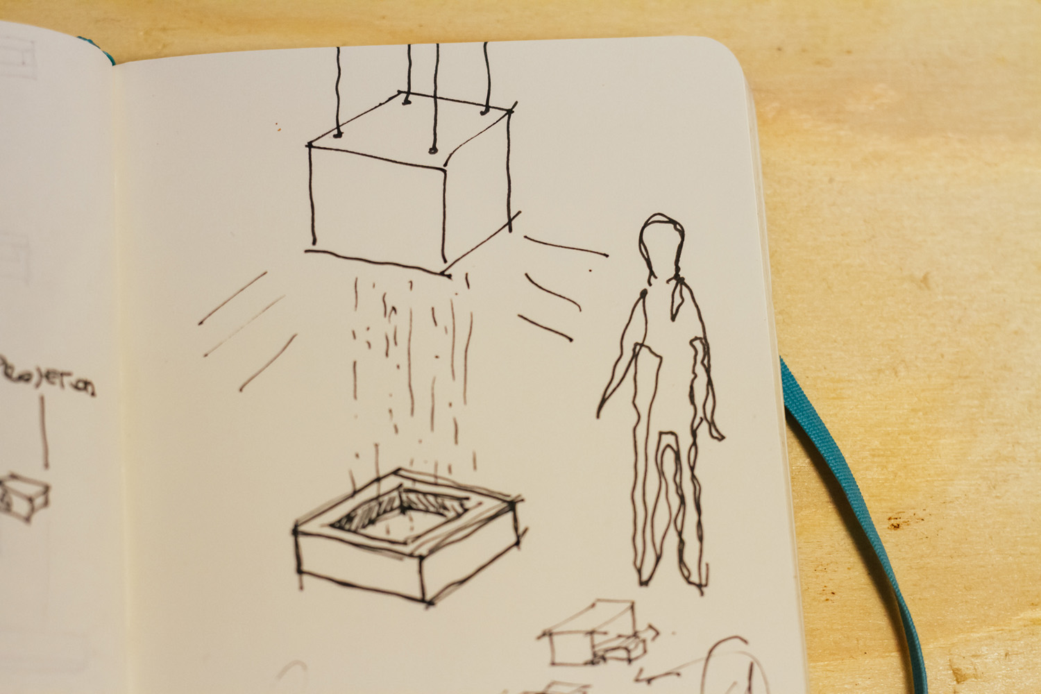 The “rain” part of the installation is basically a shower plate made in acrylic but with really specific hole sizes to make it drip more like rain.