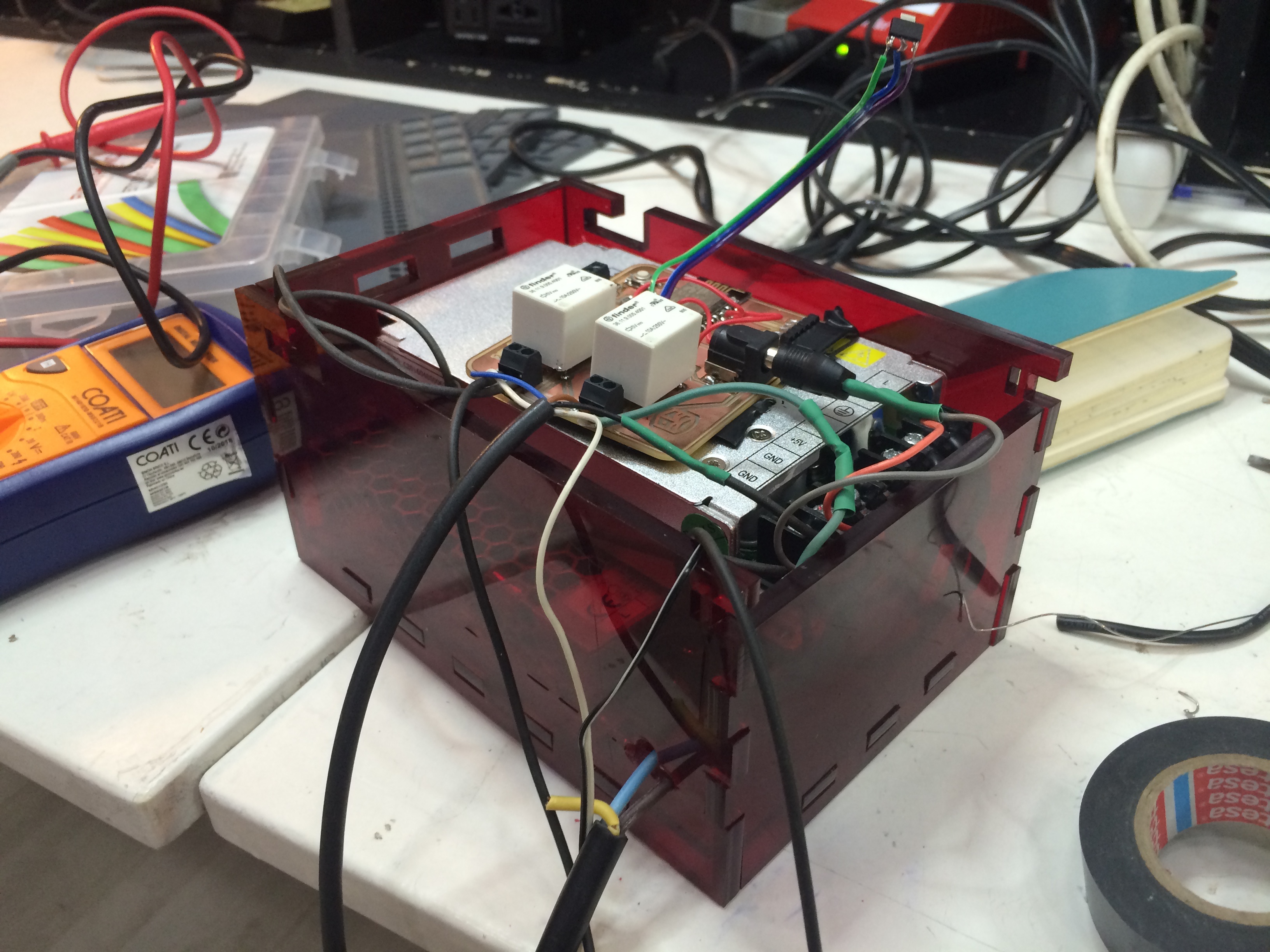 After this was only a matter of placing two relays circuits (mosfets, LEDs, resistors and relays) and an output for the LED strip.