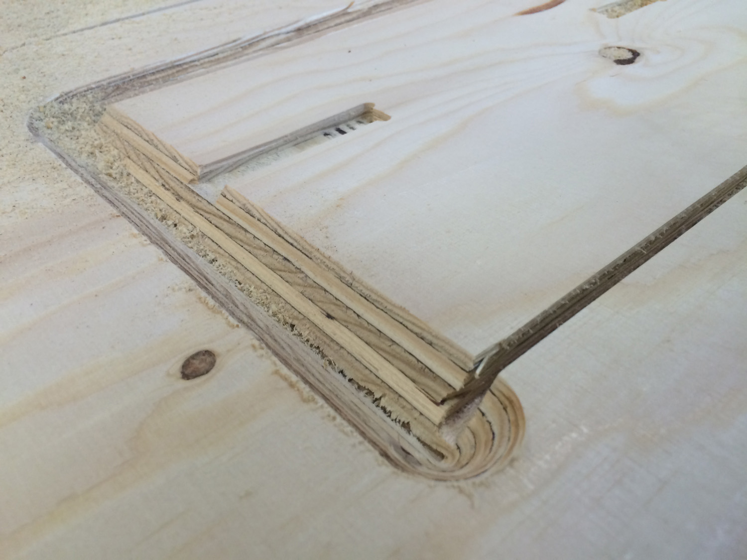 Entering along the path helps to avoid chipping the board, while exiting in this case is better if you do it along the axis because of the hardness of the plywood.