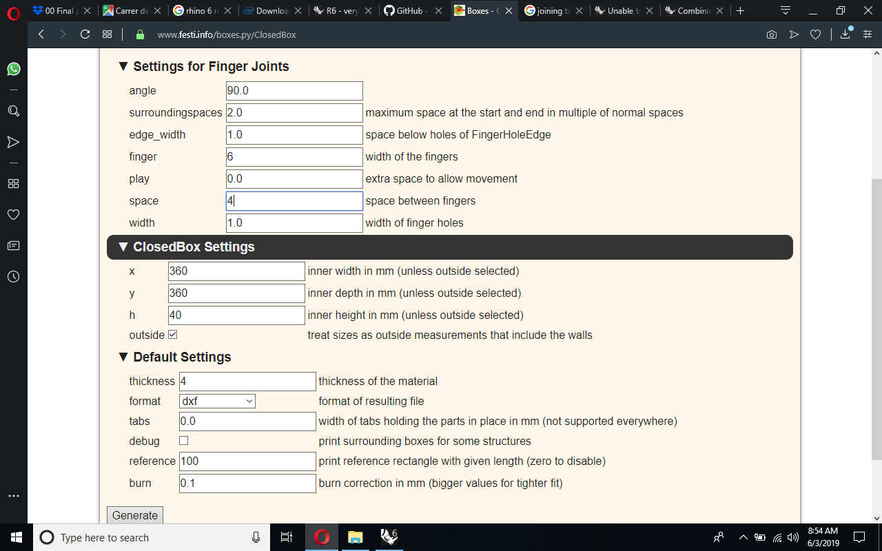 To generate the rest of the shower plate I used the Boxes.py, having a .dxf file so I could easily cut the pieces in the laser cutter and fit it really nice.