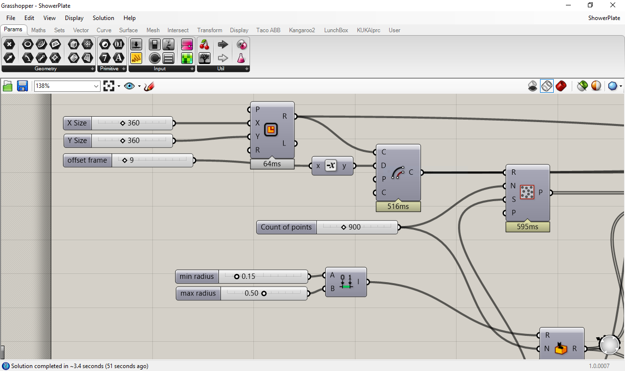 But the dripping rate was too low, so I went back to Grasshopper to fix it.