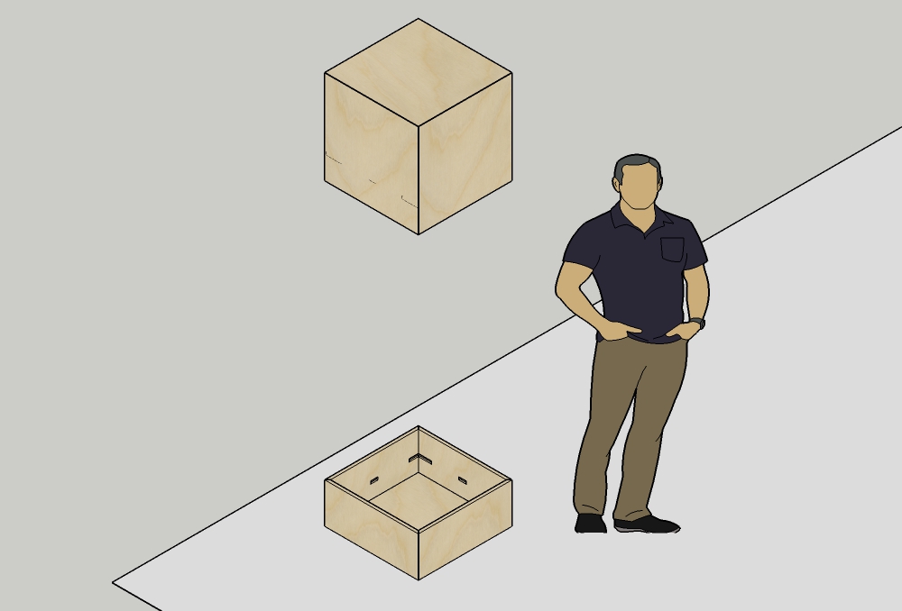 I decided to use a pure cube as a neutral background for the effects that I’m looking for. Using plywood is also a way to try to maintain the nature-focused look.
