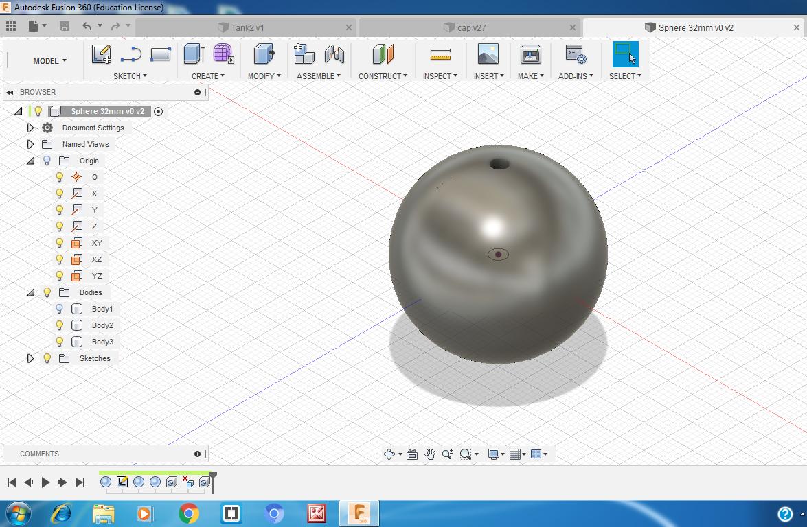 After 3D printing a first prototype of the sphere we discovered that it needs to me more heavy so we decided to 3D print another sphere by softly minimizing its diameter and filling it with more material by using the (fill) option.