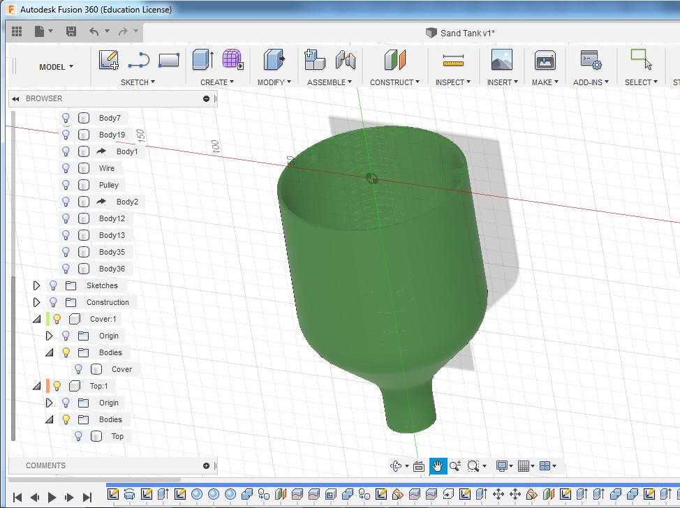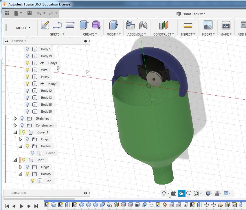 The sand tank is controlled by a servo motor. The srevo motor is connected to a ball with a string inside the sand tank ; when the ball goes down it opens the sand tank nozzle and releases the sand and when it goes up it closes the nozzle and the sand stop going down.