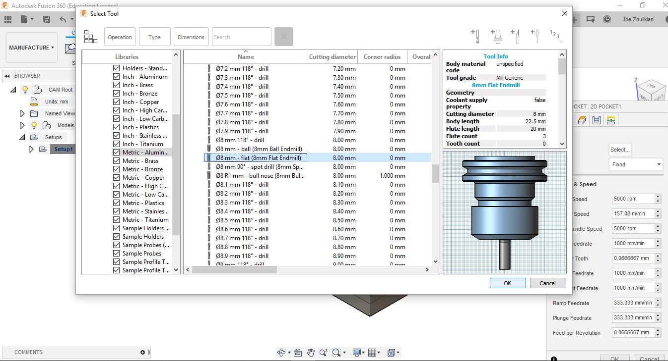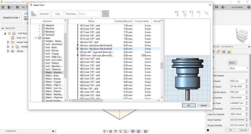 I started by zeroying the FEM 8mm, then I machined the 2D