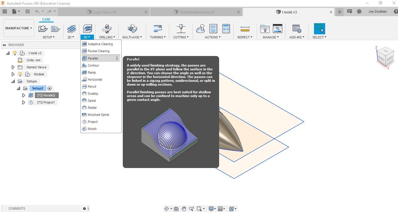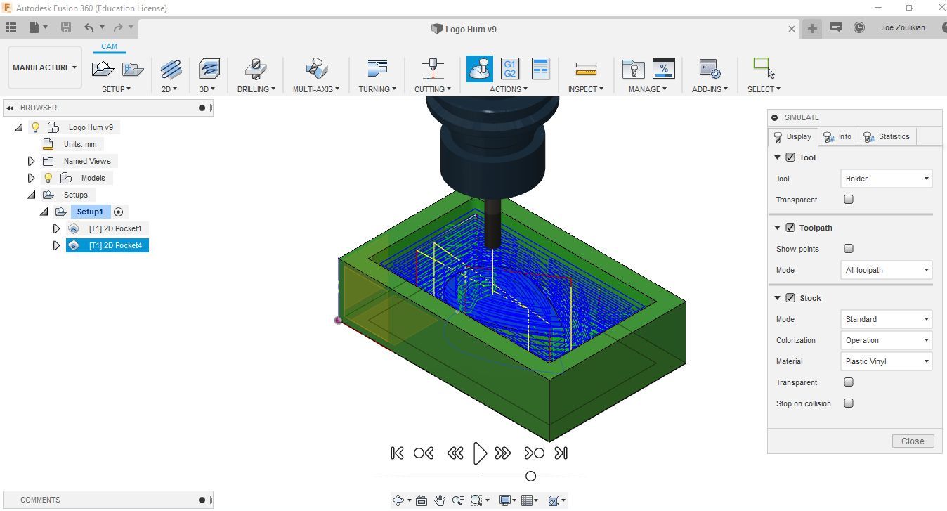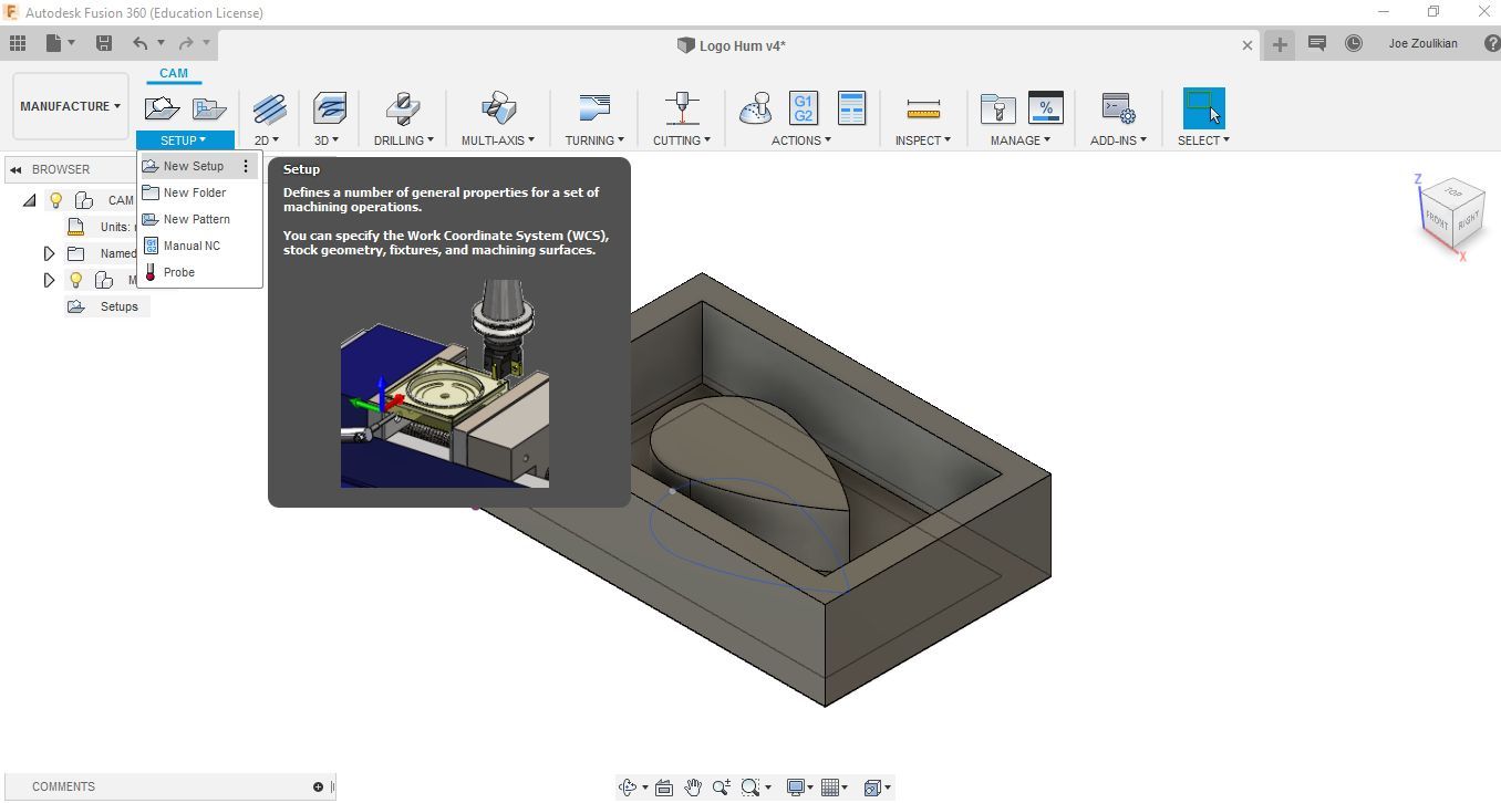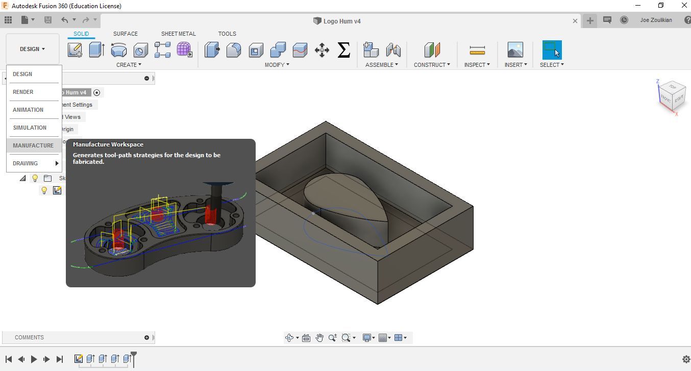 I will design and manufacture the mold of the "Humidity logo" in 3D, and then I will cast it. For this purpose, I started to get familiar with the Manufacturing functions and steps of "Fusion 360", in order to generate the specific G and M codes.