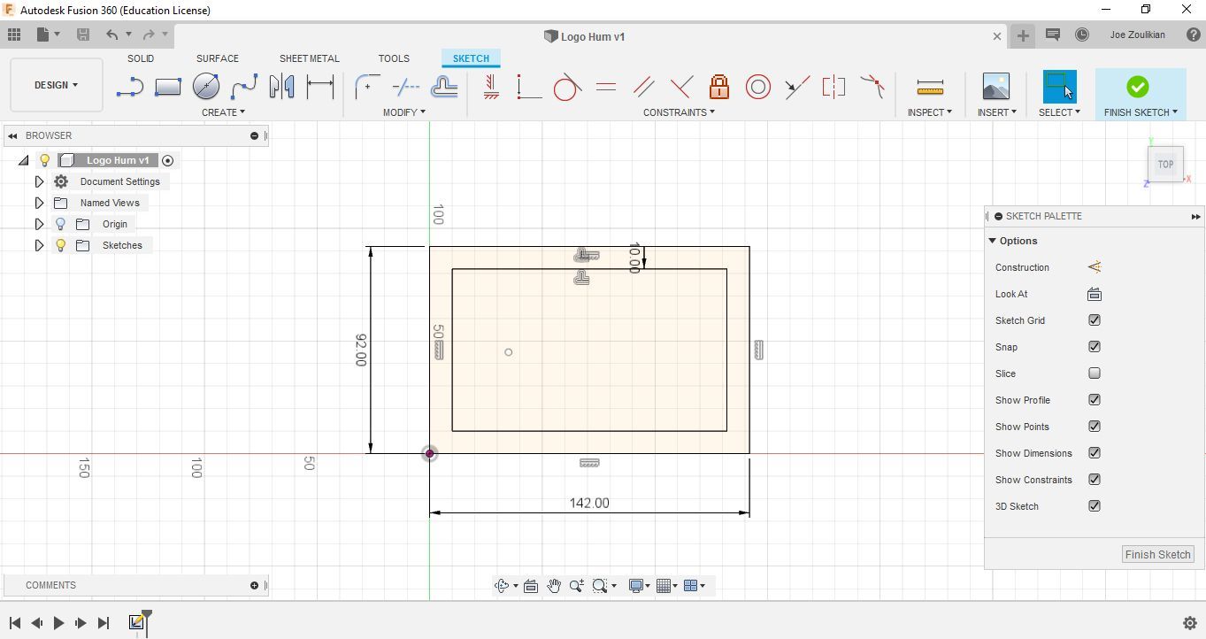 I extruded the 2D rectangle 36mm, and the 2D logo 29mm.