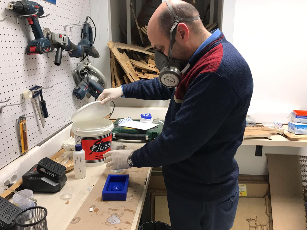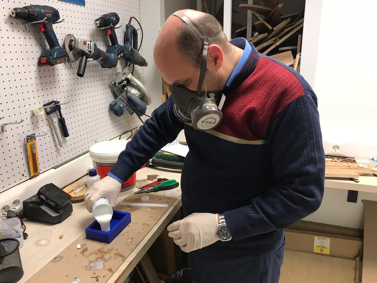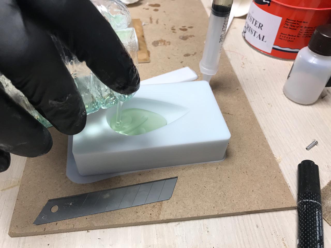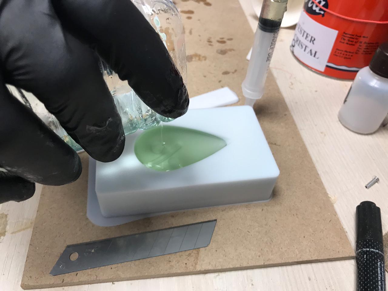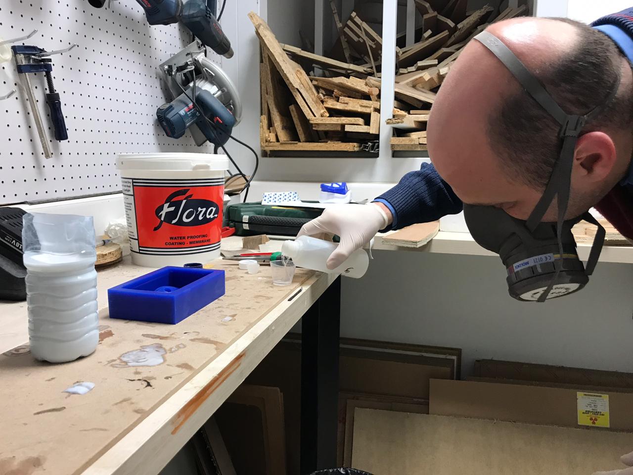 Always use safety products when working with silicone and resin. Always wear gloves, apron, coveralls, boots, chemical goggles.