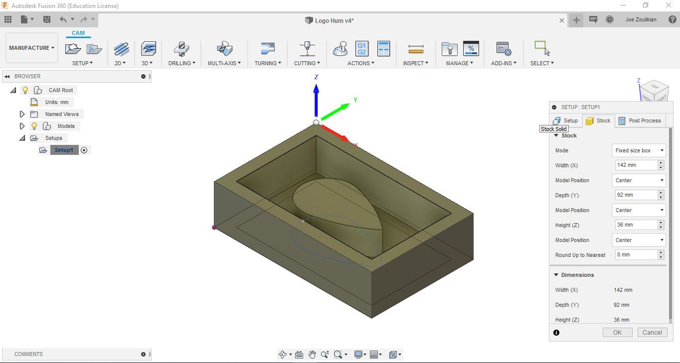 The individual assignment is to design a 3D mold around the stock and tooling that we will be using, mill it, and use it to cast parts.
