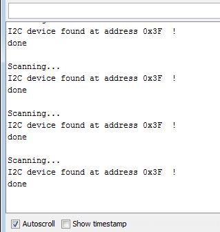 I checked the LCDI2C type by pressing Tools/Serial Monitor. As you can see in the picture the LCD type is "0x3F". I will insert it to commend the LCD.
