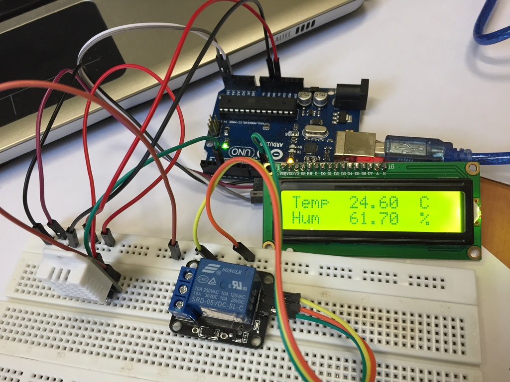 Practically, I arranged the limit humidity to 70% so that when the room humidity reached or exceed the 70% the relay will turn On the Dehumidifier.
