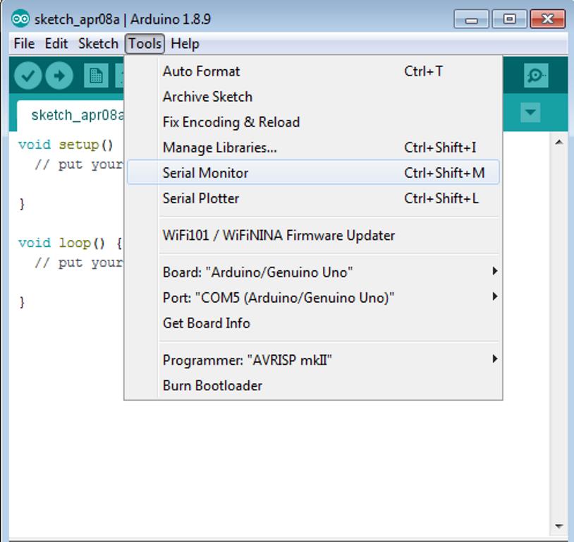 Inside Tools/ Port/ "COM3(Arduino/Genuino Uno)" I will specify COM3(Arduino/Genuino Uno).