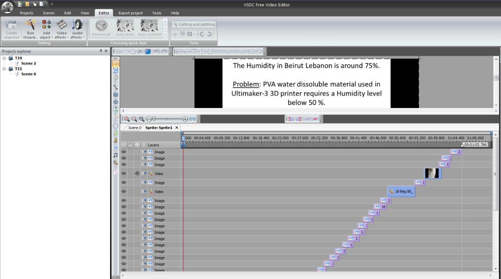 I used the VSDC Free video editor software to prepare the final video. I prepared a new file containing all the pictures and videos that I wanted to input in the final video, then inserted them in my preferred order and adjusted the total timeframe as well as the single timeframe for each picture.