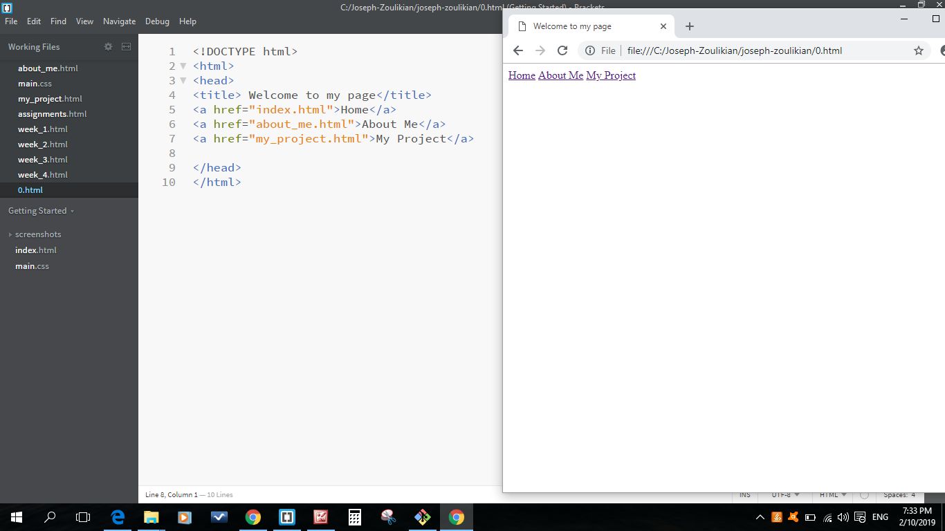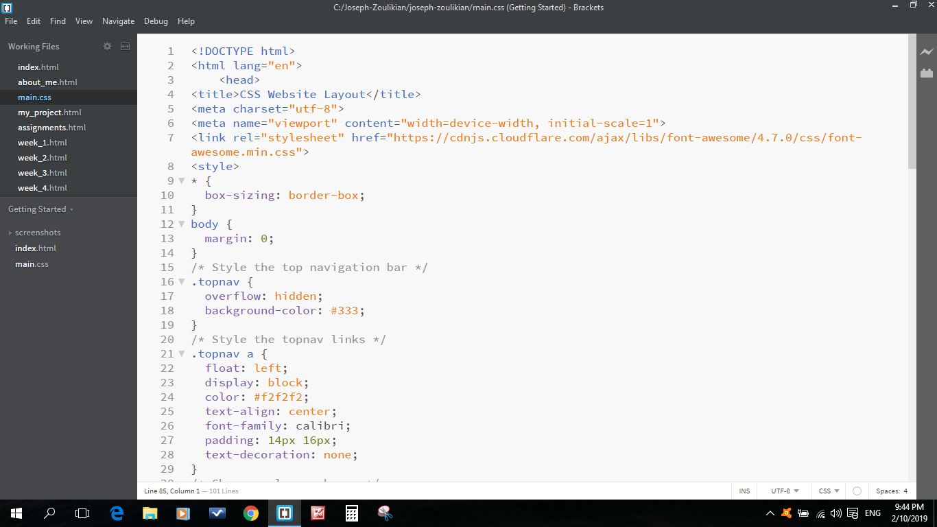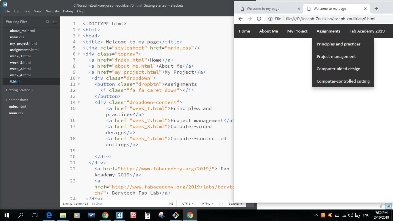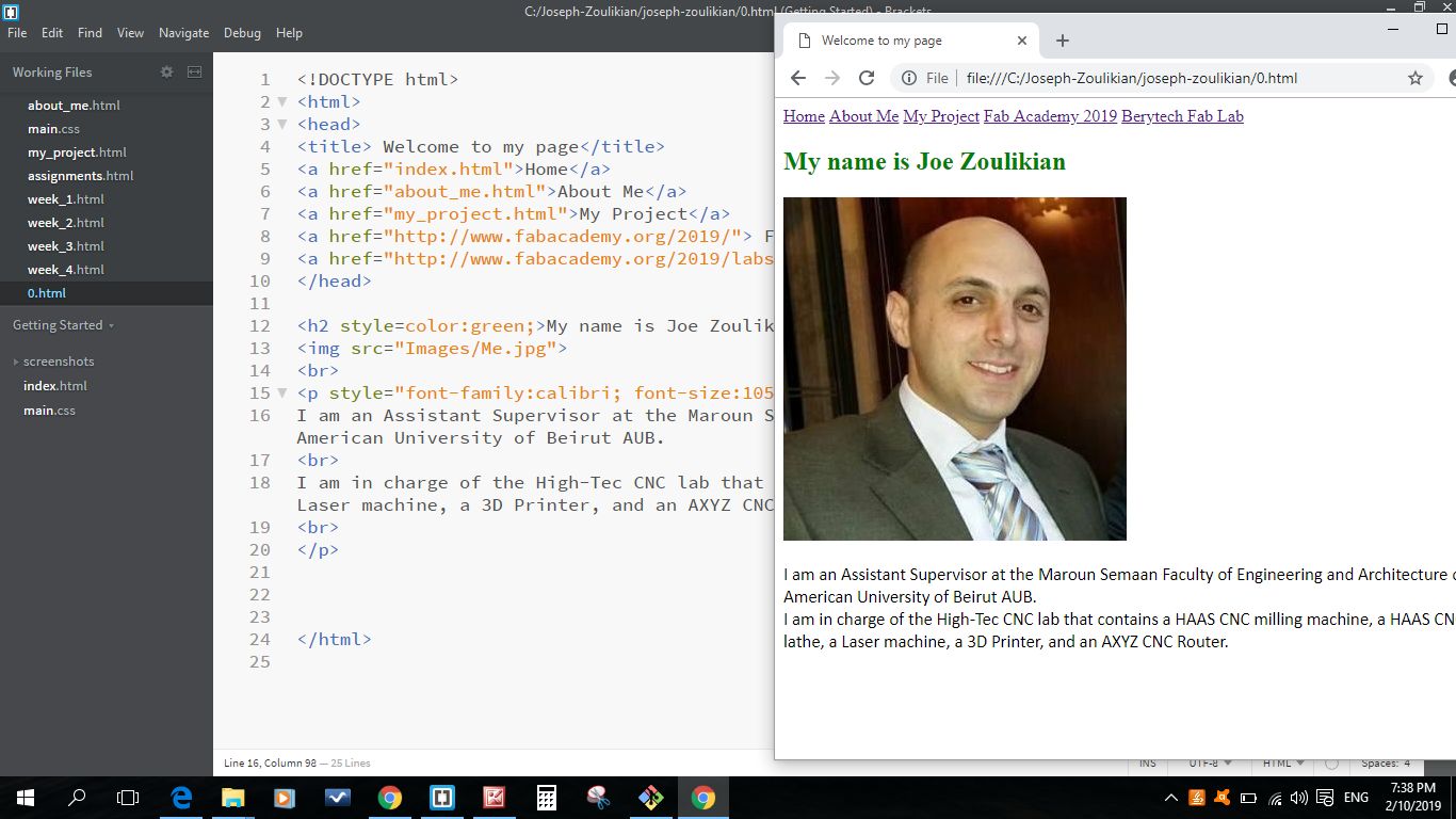 The personal website will be our portfolio that will include our weekly assignments and our final project's progresses. It will be in HTML format and must be able to exist within a GIT archive. I was introduced to Atom and Brackets software that is used to read and write the HTML code.